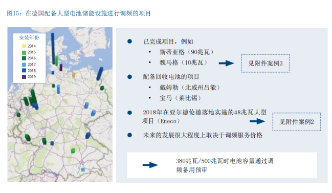 过去几年中,德国已有50多个用于调频的大型电池项目 落地实施(图15 )。