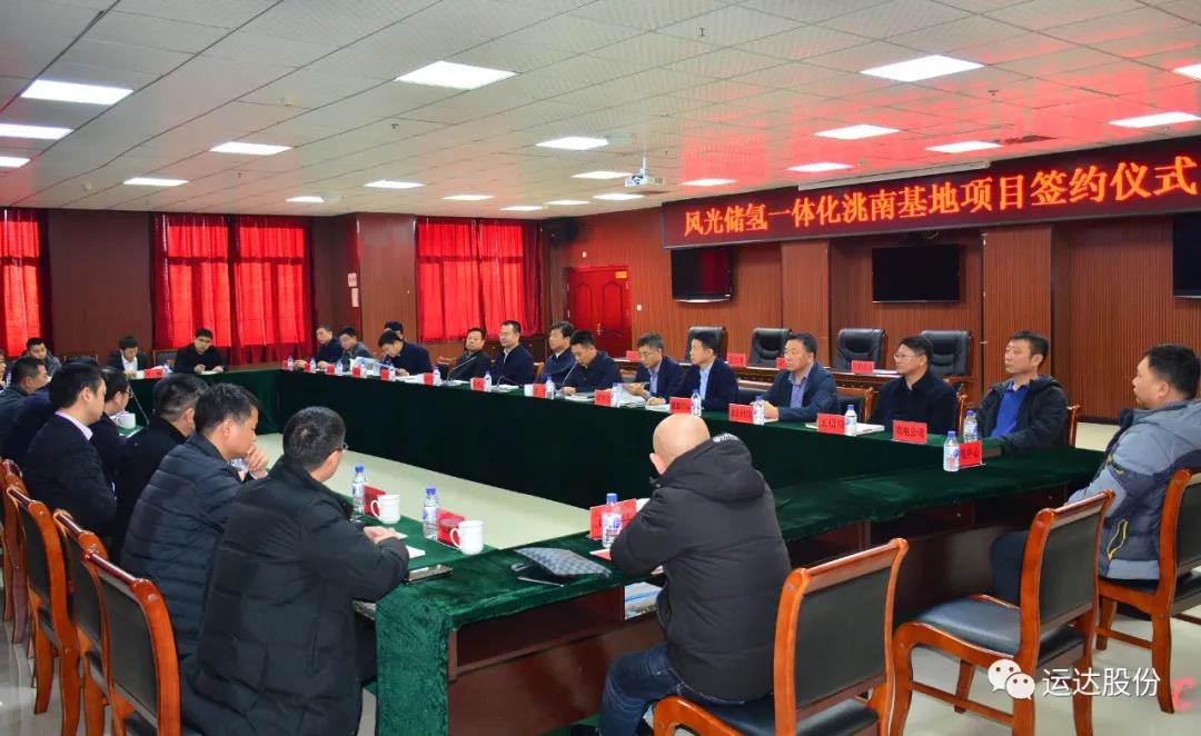 2020年11月9日,浙江运达风电股份有限公司、吉林省白城市洮南市人民政府、中国能源建设集团投资有限公司西南分公司及宇众新能源科技(江苏)有限公司,在吉林省白城市洮南市共同签署了“风光储氢一体化洮南基地项目投资合作协议”。白城市委常委、洮南市委书记薛智金,洮南市委副书记、市长纪纲,中能建集团投资公司西南分公司、中能建集团葛洲坝电力有限责任公司、宇众新能源科技有限公司中国区等相关单位领导,运达股份市场总监兼营销中心总经理程晨光,运达股份营销中心大客户总监陈晗共同出席了本次签约仪式并举行了座谈。