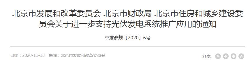 北京市多部门联合发文: 光伏强补贴新政再出台
