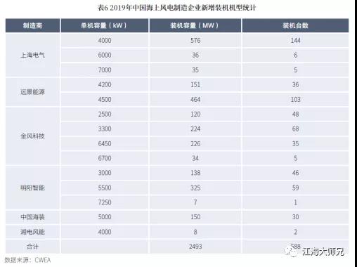 中国海上风电整机商排名2019
