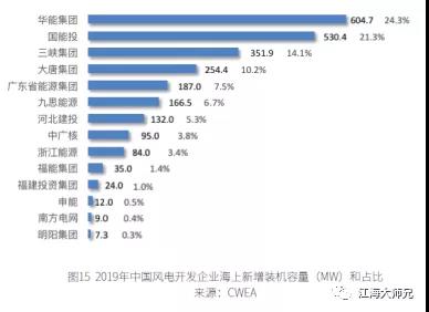2019年中国风电开发商装机排名