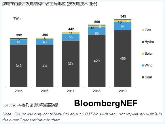 2019年煤电在内蒙古总发电量的占比