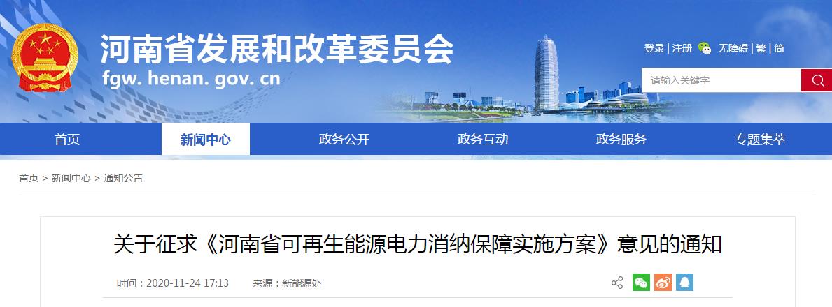 河南省:可再生能源电力消纳保障实施方案意见征求