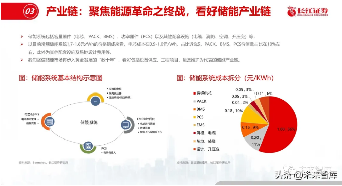 商业模式的完善不会是一蹴而就的,展望来看,两大变化或成为国内储能启动的“奇点”:1)伴随可再生能源成本下行,2021年国内光 伏、风电基本都将达到平价条件,后续进一步的成本下降,为储能定价打开空间;2)电改逐步推进,尤其是电力的市场化定价取得进 展,有望为辅助服务科学定价、拉开峰谷价差,进而提升储能内生的经济性。