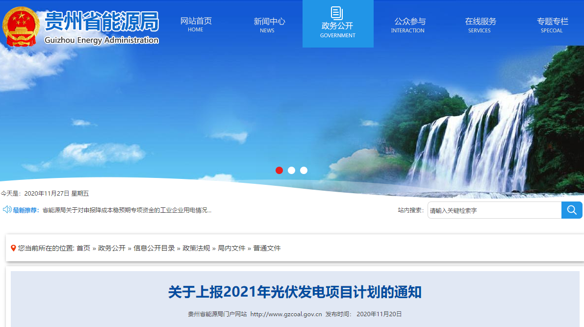 贵州2021年光伏发电项目计划:鼓励风光互补、火光互补、水光互补等联合送出