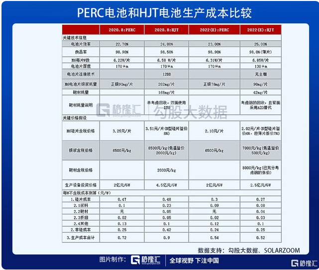 如果HJT电池生产成本想赶超PERC电池,只有通过浆料、设备、硅片薄片化的大幅将本。