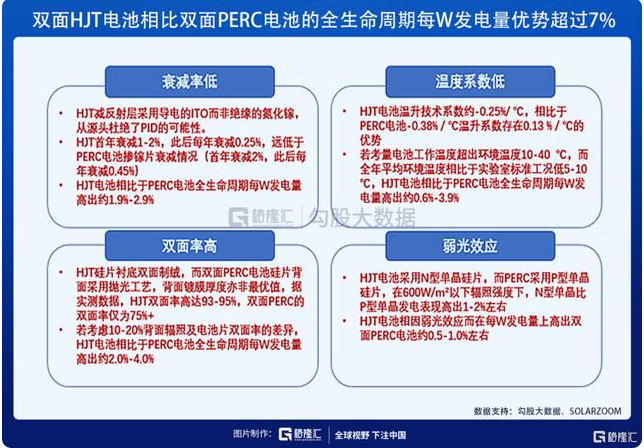 对于双面HJT电池而言,其全生命周期每W发电量显著高于双面PERC电池,相对优势在7%以上的水平。具体分解如下: