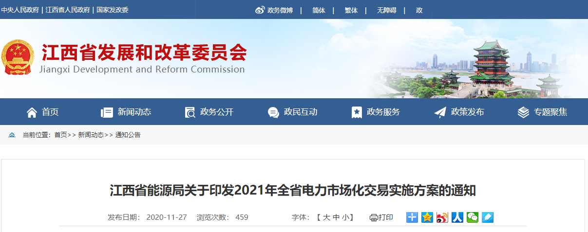 江西省能源局关于印发2021年全省电力市场化交易实施方案的通知