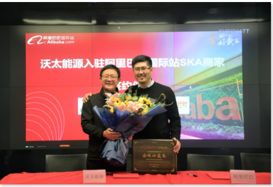 在“沃太能源入驻阿里巴巴国际站SKA商家”仪式上,沃太能源董事长袁宏亮与阿里巴巴国际站华东大区总经理侯野出席签约,并举行了“全球好卖家”称号的授牌仪式。