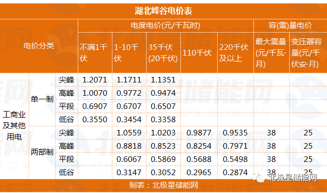 湖北最新峰谷电价表如下: