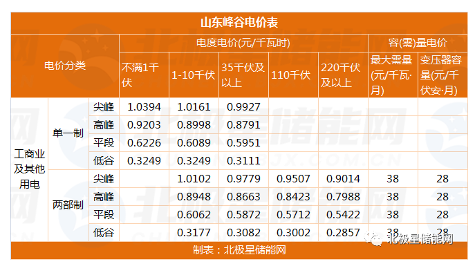 据文件,整理山东最新峰谷电价表如下:
