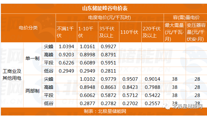 此外,根据山东发改委《关于开展储能峰谷分时电价政策试点的通知》,电力储能技术装置低谷电价在现行标准基础上,每千瓦时再降低3分钱,该文件自2020年6月1日起试行,有效期至2022年5月31日。这意味着在山东储能执行的单一制电价尖峰低谷电价差将高达0.7116元/kWh以上,高峰低谷电价差也有0.598元/kWh以上。