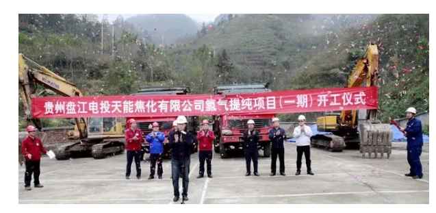 制氢工厂项目的实施既延长煤炭产业链,提高企业经济效益,又为氢能产业发展提供氢源保障。近年来,六盘水市委市政府坚定“立足煤、做足煤、不唯煤”的发展方略,逐步推动新型能源化工产业发展,做大做强氢能源产业,助推脱贫攻坚和产业转型升级高质量发展,强力推动六盘水市经济社会绿色健康快速发展。盘江电投天能焦化有限公司氢气提纯项目的开工建设,充分体现了六盘水市加快新型能源化工产业发展的信心和决心,六盘水将乘坐“高铁”进入氢能源产业发展的“快速通道”。