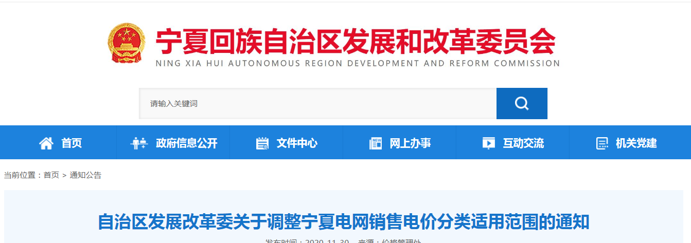 自治区发展改革委关于调整宁夏电网销售电价分类适用范围的通知