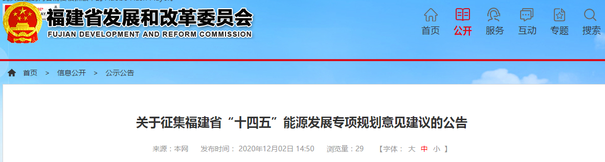 关于征集福建省“十四五”能源发展专项规划意见建议的公告