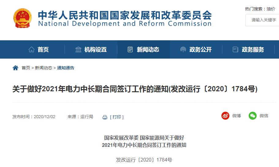 各地政府主管部门、电力企业、交易机构要高度重视2021年电力中长期合同签订工作,做好省内和跨省跨区电力中长期交易(含优先发电)合同签订的组织协调,努力在2020年12月底前完成年度中长期合同签订工作。