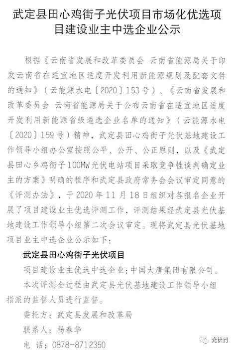 武定县光伏项目优选中标企业公示