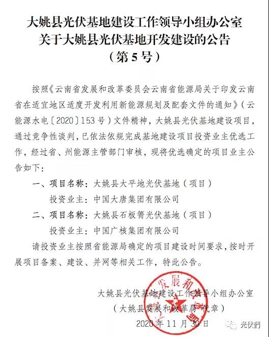 大姚县光伏项目优选中标企业公示