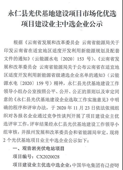 永仁县光伏项目优选中标企业公示