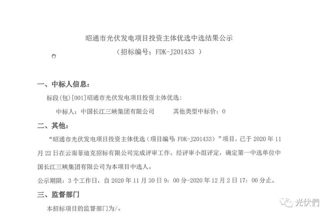 昭通市光伏项目优选中标企业公示