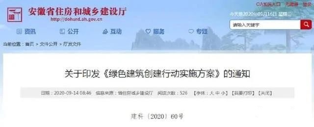 9月4日,安徽省住建厅、省发改委、省教育厅、省经信厅等七部门联合发布《绿色建筑创建行动实施方案》,提出将以城镇建筑作为创建对象,全面实施绿色建筑创建行动。到2022年,当年城镇新建建筑中绿色建筑面积占比达到70%,星级绿色建筑持续增加,装配化建造方式占比稳步提升,绿色建材应用进一步扩大。