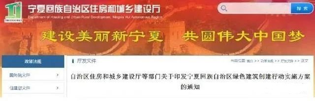 近日,宁夏回族自治区住建厅区发改委、区教育厅、工信厅等七部门联合发布《宁夏回族自治区绿色建筑创建行动实施方案》的通知,明确到2022年,当年城镇新建民用建筑中实施绿色建筑面积占比达到70%,星级绿色建筑持续增加,住宅健康性能不断完,装配化建造方式占比稳步升,绿色建材应用进一步扩大绿色住宅使用督全面推广。