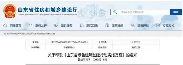 近日,山东省住建厅、省发改委等七部门联合发布《关于印发山东省绿色建筑创建行动实施方案的通知》,提出创建目标,到2022年,城镇新增绿色建筑3亿平米以上,城镇新建民用建筑中绿色建筑占比达到80%以上,城镇新建建筑装配化建筑方式占比达到30%。