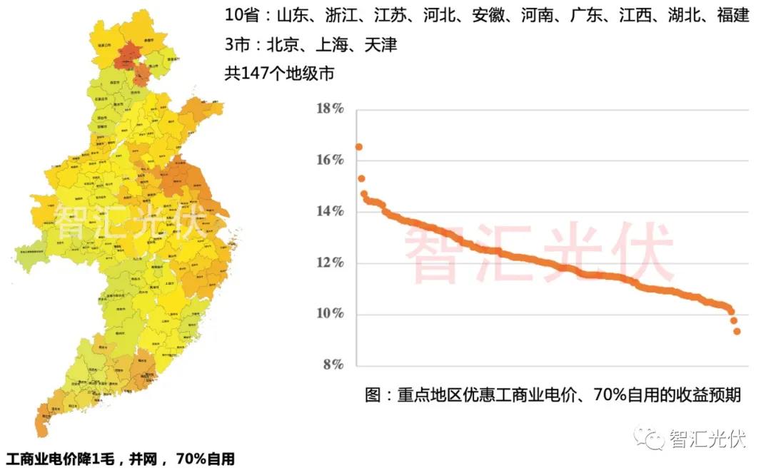 对上述分布式发展好的地区,工商业、大工业分布式项目的收益进行简单测算,如下图所示。