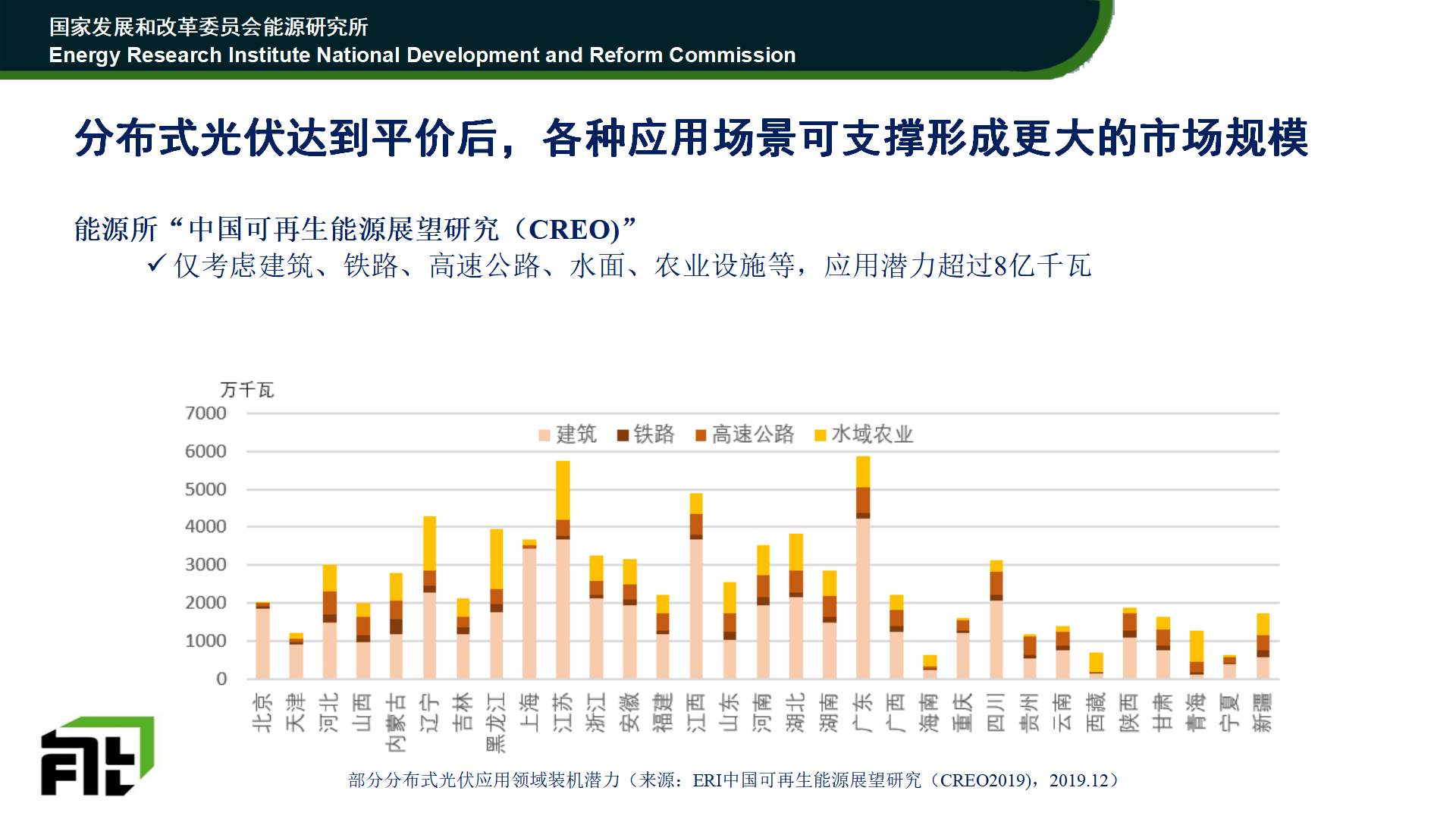 根据CREO统计,仅考虑建筑、铁路、高速公路、水面、农业设施等,分布式光伏应用潜力超过8亿千瓦。据测算,仅长三角三省市(上海、江苏、浙江)分布式光伏发电的应用潜力就超过了2亿千瓦。
