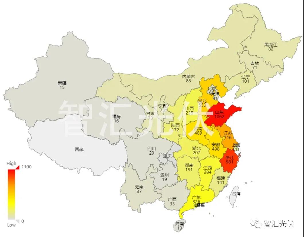 河北、安徽、河南、广东、江西、山西、湖北7省超过2GW,合计占比39%;