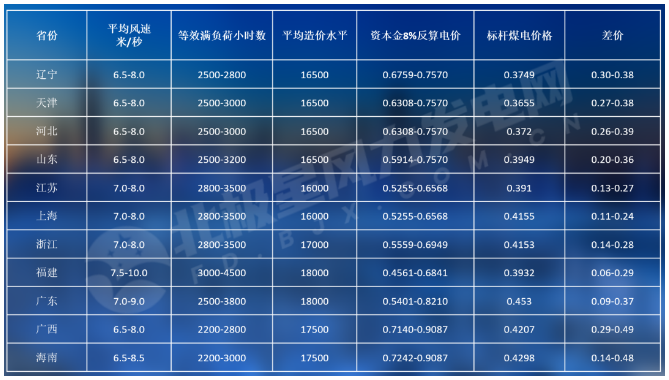 当前,海上风实现平价仍存在一定困难。从海上风速资源分布情况来看,资源比较丰富的区域主要集中在上海及以南地区,这些地区风能资源相对集中。广西区域风资源条件相对较弱,所以实现平价对于风机的单位千瓦面积要求更高,广东区域有台风抗台要求、还有用海限制,远距离输送,基础类型等因素。从海上风电项目平均造价方面分析来看,由于辽宁、广东、福建地区海床复杂,存在嵌岩等情况,所以造价偏高。江苏区域对于率先实现平价来说有更好的条件。中国华能集团清洁能源技术研究院院长助理郭辰分析说。