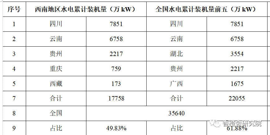 我国水电主要集中在西南地区,水电累计装机量占全国比重接近50%。其中,四川、云南和贵州水电累计装机量分别为7851万kW、6758万kW和2217万kW,位列全国第一、第二和第四位,如表1.1所示。