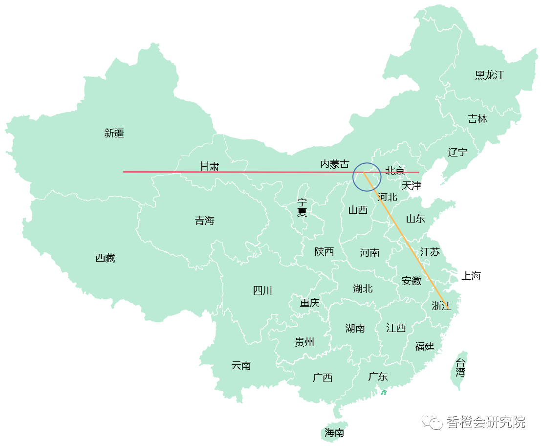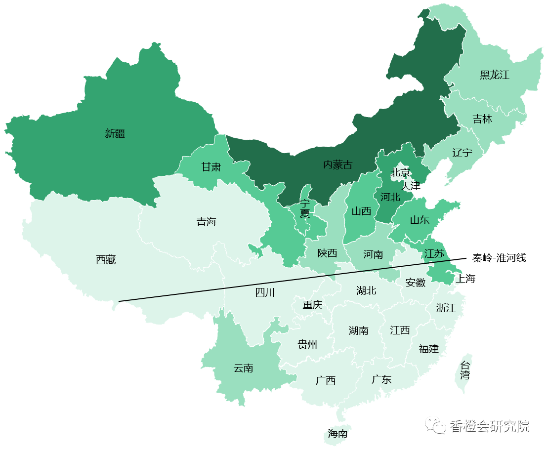 根据香橙会研究院的研究,目前,国内风电和光伏呈现“一横一纵”的发展格局。东西横向风光兼备,由西北地区和华北地区构成,涵盖新疆、甘肃、内蒙古、山西和河北等地;南北纵向以光伏为主,由华北、华东和河南组成,即内蒙古、山西、河北、河南、山东、安徽、江苏和浙江。