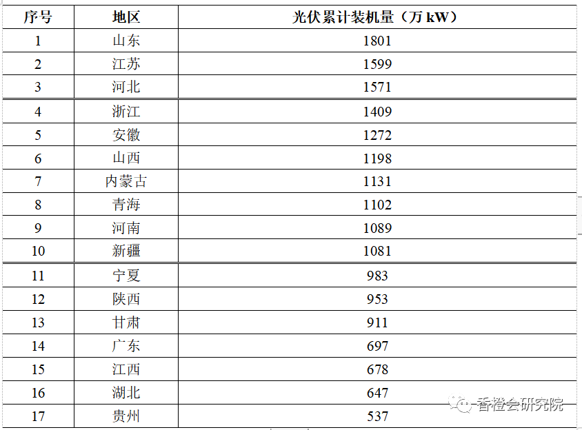 表1.3 我国部分地区光伏累计装机量(2020H1)