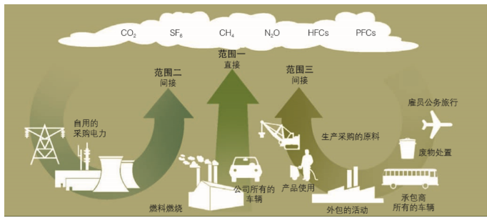 碳中和是指通过碳封存和碳抵消平衡整体经济排放量,从而实现净零碳排放。它包括降低正排放(如化石能源燃烧产生的排放)和增加负排放(如森林碳汇)两方面。其中,根据温室气体核算体系(GHG protocol),温室气体正排放降低又可分为三个范围,范围一是降低直接温室气体排放,包括企业直接控制或拥有的排放源所产生的排放,如生产过程中产生的温室气体,拥有的交通工具所释放的温室气体等;范围二是降低电力产生的间接温室气体排放,是由企业消耗的外购电力产生的温室气体排放,包括蒸汽、供暖和供冷等;范围三是降低其他间接温室气体排放,主要来自于企业供应链中其他企业的排放。