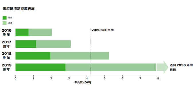 苹果为全球的办公楼、零售店等生产和采购可再生电力,并优先创建新的可再生能源项目。截至2020年1月,苹果采购的可再生能源中有83%来自自创项目,包括建设太阳能和风能等自有项目、通过股权投资的形式成为可再生能源项目的股东,以及签订长期可再生能源合同。三种措施中最主要的是签订可再生能源合同,占自创项目的84%。2018年苹果成立中国清洁能源投资基金,在中国投资可再生能源项目,目前已经取得良好进展。当前,苹果在 44 个国家和地区的所有办公室、零售店和数据中心都承诺100% 使用可再生电力。