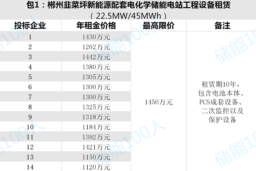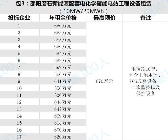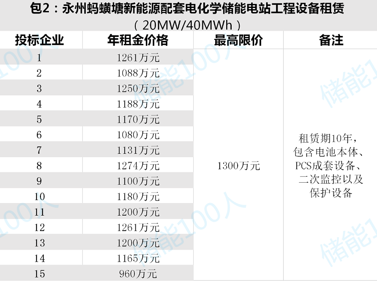 根据“储能100人”此前独家跟踪报道(湖南新能源配套储能项目核心设备租赁开标,最终会花落谁家?),该项目投标竞争异常激烈,共有21家公司参与角逐。有投标企业表示,该项目对设备的技术指标要求很高,系统效率要求在86%-88%之间,10年内储能系统放电容量不低于初装时的90%。