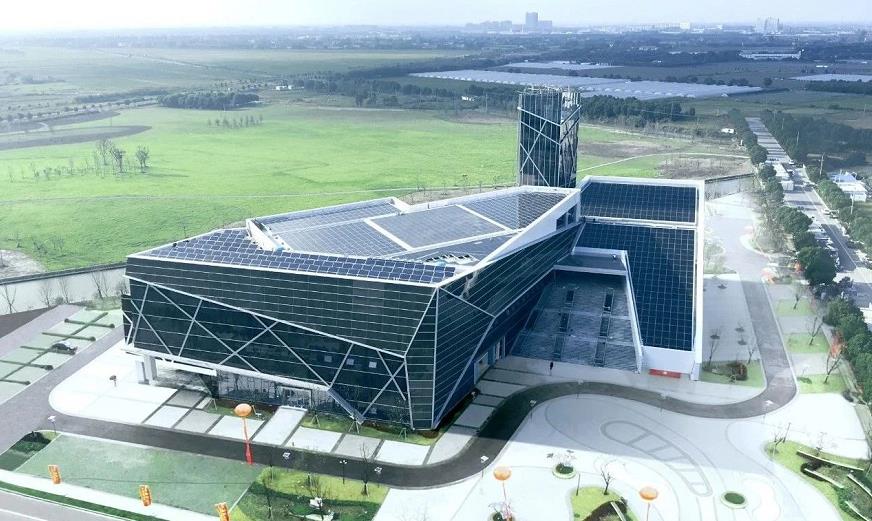 ▲ 嘉兴光伏科技馆--整个建筑在设计上贯彻了光伏概念,外立面采用碲化镉光伏发电玻璃幕墙,屋面采用碲化镉光伏发电玻璃和晶硅光伏板组合形式,发出的电一部分用于建筑本身用电负荷,一部分并网到大电网,卖电获得收益。