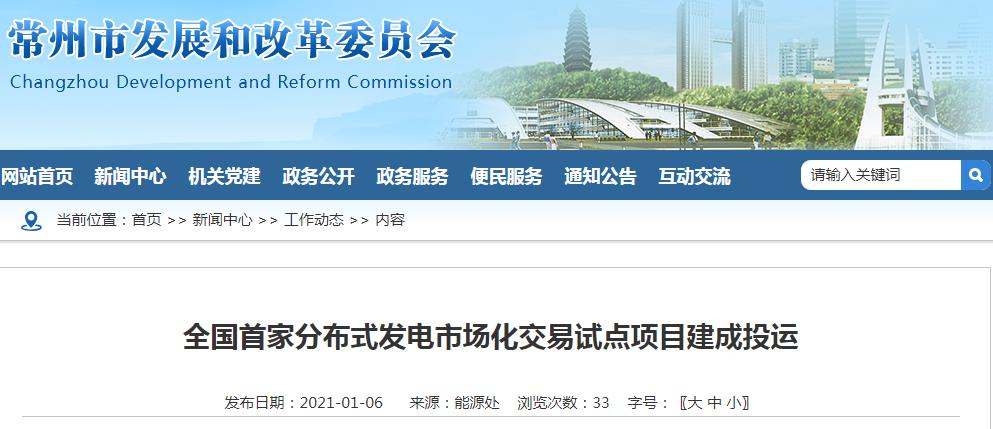 根据试点条件和要求,我委组织相关区域开展项目筛选,推荐天宁区郑陆工业园申报分布式发电市场化交易试点工作,并于2019年成功入围国家首批26家试点名单。经过一年多的艰苦推进,项目业主完成基础建设、光伏设备安装调试、输配电服务三方合同签订等工作,在国家全部试点项目中率先建成并网发电,成为首个“吃螃蟹”的人。