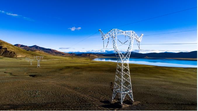 ▲阿里联网220千伏日土白绒山羊头景观塔。张笑谭/摄