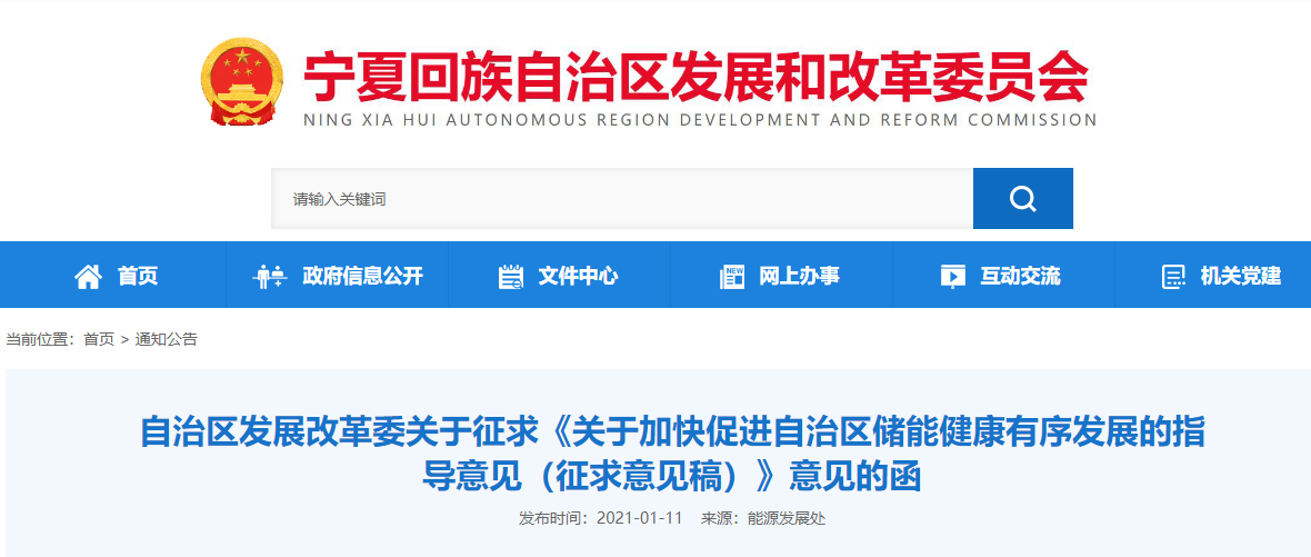为推动我区清洁能源产业一体化配套发展,认真贯彻《国家发展改革委 国家能源局关于开展“风光水火储一体化”“源网荷储一体化”的指导意见(征求意见稿)》文件精神,切实推动我区能源高质量发展,自治区清洁能源产业一体化配套发展工作专班研究起草了《关于加快促进自治区储能健康有序发展的指导意见(征求意见稿)》,现向各有关单位征求意见及建议,请于2021年1月15日前将相关意见以正式文件反馈我委能源发展处。