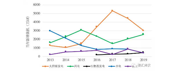 先来看一下,最近几年,各类可再生能源的装机,如下图所示。
