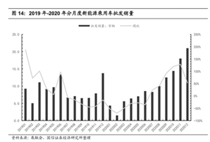 2019年-2020年分月度新能源乘用车批发销量