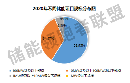 据EESA统计,2020年共有193个储能项目有动态更新(处于施工安装、竣工验收阶段),规模总计为3604.093MW / 5825.966MWh。其中100MW级及以上规模的有2124.62MW / 2950.06MWh,占全年项目总规模的58.95%。10MW级及以上100MW级以下规模的有1245.96MW / 2329.56 MWh,占全年项目总规模的34.57%。1MW级及以上10MW级以下规模的有229.3MW / 376.157 MWh,占全年项目总规模的6.36%。1MW级以下规模的有4.2125MW / 15.449MWh,占全年项目总规模的0.12%。此外,规模暂不明确的储能项目共计49个。