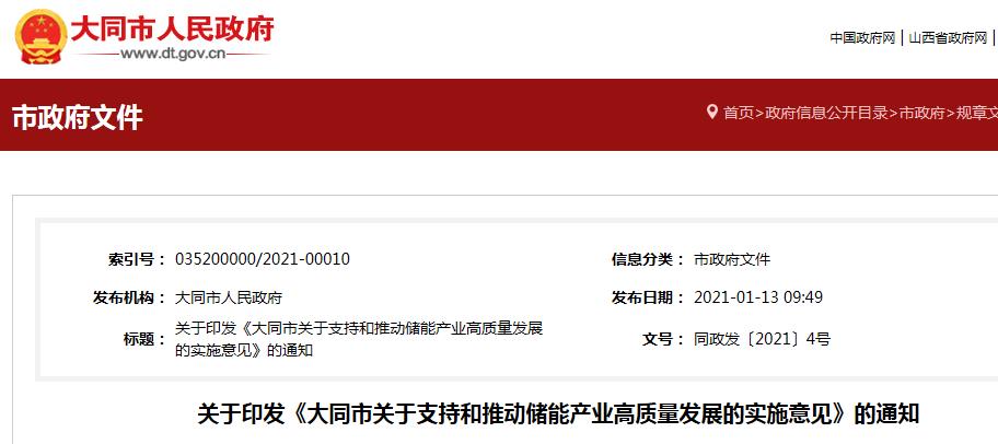 大同市支持和推动储能产业高质量发展的实施意见发布
