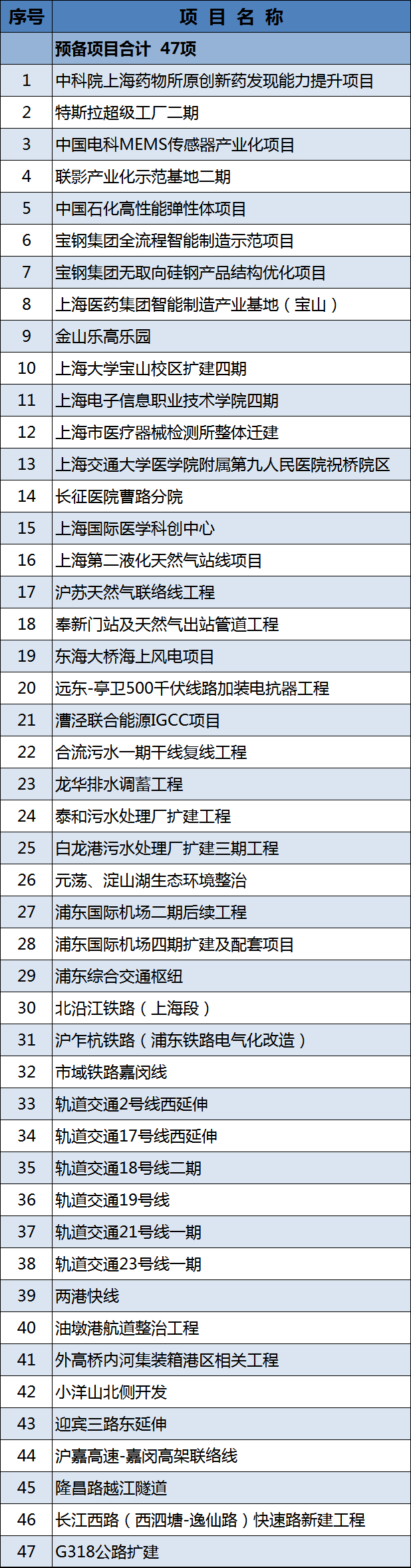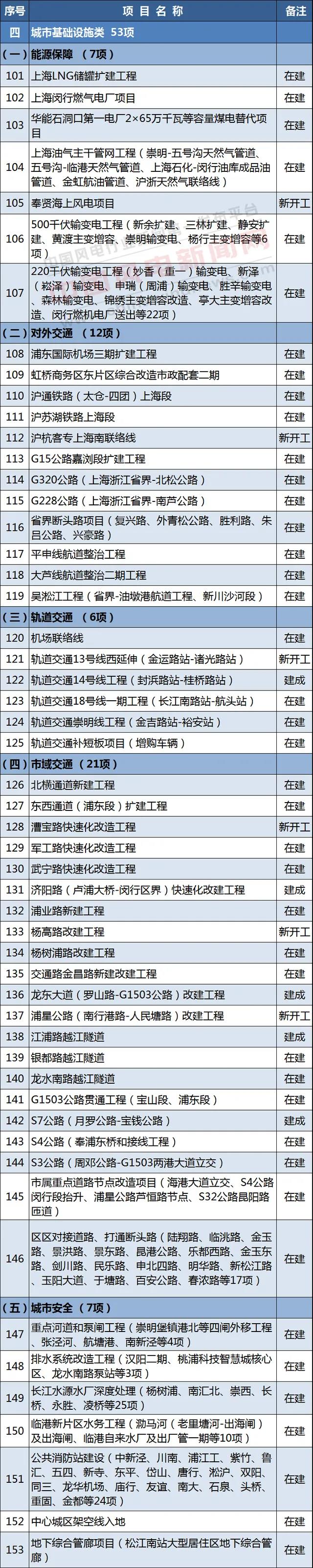 2021年上海市重大建设项目清单正式公布,计划安排正式项目166项,其中计划新开工18项、在建128项、建成20项。另外,安排预备项目47项。