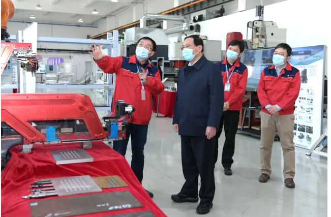 上海拓璞数控科技股份有限公司作为面向航空航天领域的高端智能制造装备供应商,由机械制造、自动化、计算机信息等多学科专家与机床行业企业家及工程技术人员联合创立,相关产品、系统填补了国内细分领域的空白,达到国际先进水平。李强在公司察看具有自主知识产权的产品和生产线,听取设计研发、生产销售和售后服务等情况介绍,勉励企业实施好关键核心技术攻关工程,加快解决所在领域“卡脖子”问题,研发更多独门绝技,更好服务国家重大任务,更好助力高端装备产业发展。