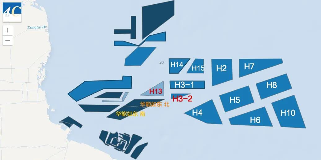 如东海上风电场布局(图:4coffshre,CWEA制图)