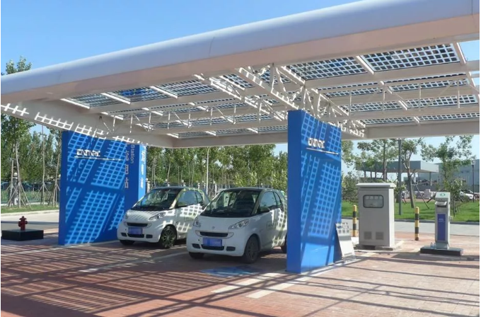 太阳能汽车充电站和汽车加油站相类似,是一种“加电”设备,一种新型环保、高效率的充电器,通过光伏设备产生的电力可以快速的给手机、电动车、电动汽车等充电。