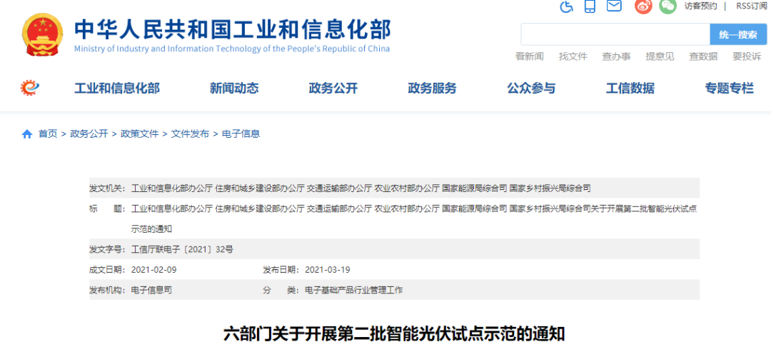 为推动光伏产业高质量发展,鼓励智能光伏产业技术进步和扩大应用,加快构建清洁低碳、安全高效能源体系,按照《智能光伏产业发展行动计划(2018-2020年)》(工信部联电子〔2018〕68号)工作部署,工业和信息化部、住房和城乡建设部、交通运输部、农业农村部、国家能源局、国家乡村振兴局决定组织开展第二批智能光伏试点示范工作。有关事项通知如下: